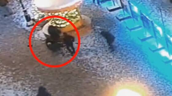 На кадрах видно, как двое мужчин с, предположительно, ножами нападают друг на друга около мандариновых елок. К ним приближается третий человек – он получает ранение и падает на землю. Далее самого активного участника конфликта скручивают.