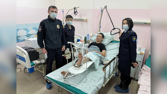 Старший следователь Следственного управления МВД по Республике Саха (Якутия) капитан юстиции Виктория Скрыбыкина, двигаясь на автомобиле по улице Очиченко города Якутска, заметила мужчину, который внезапно поскользнулся и упал на тротуар. В этот день стоял тридцатиградусный мороз. Она остановилась, чтобы помочь гражданину. Следователь увидела, что его левая нога находится в неестественном положении, и поняла, что он получил перелом. Пострадавший находился в сознании, однако подняться не мог и кричал от боли. Виктория незамедлительно вызвала бригаду скорой медицинской помощи, поскольку самостоятельная транспортировка мужчины могла ухудшить его состояние, после чего, взяв у него номер телефона родственницы, сообщила о случившемся и ей. В этот момент на подмогу подоспели проезжавшие мимо слушатели Центра профессиональной подготовки МВД по Республике Саха (Якутия) – участковый уполномоченный полиции отделения МВД России по Горному району лейтенант полиции Хагани Тагиев и помощник оперативного дежурного отделения МВД России по Таттинскому району младший сержант полиции Антон Никонов. Узнав о произошедшем, они укрыли мужчину тёплым одеялом, чтобы он не замёрз, и до приезда врачей контролировали его состояние, разговаривая с ним. Затем они помогли прибывшим медикам погрузить пострадавшего в машину и передали ему личные вещи. В больнице якутянину был диагностирован перелом берцовой кости. Сейчас он проходит стационарное лечение, его жизни и здоровью ничего не угрожает. На следующий день полицейские навестили пациента в медицинском учреждении, принесли ему фрукты и пожелали скорейшего выздоровления. В свою очередь мужчина поблагодарил стражей правопорядка за помощь, оказанную в трудную минуту.