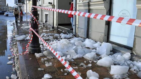 В российском городе на прохожих едва не упала глыба льда