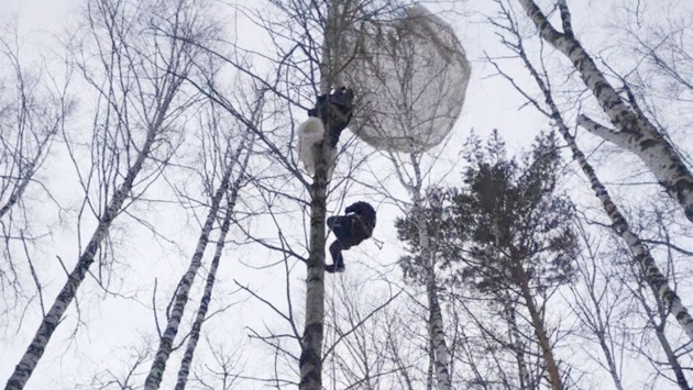 Парашютист застрял на дереве в Томской области, повисшего мужчину сняли на фото