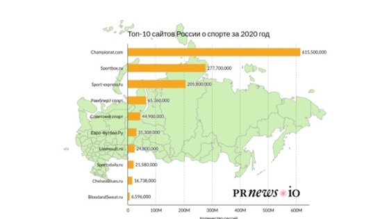 Аналитический портал PRNEWS.IO на основе данных SimilarWeb составил рейтинг самых читаемых спортивных сайтов России. «Спорт День за Днем» (Sportsdaily.ru) вошел в Топ-10. Первое место занял «Чемпионат» (Championat.com).