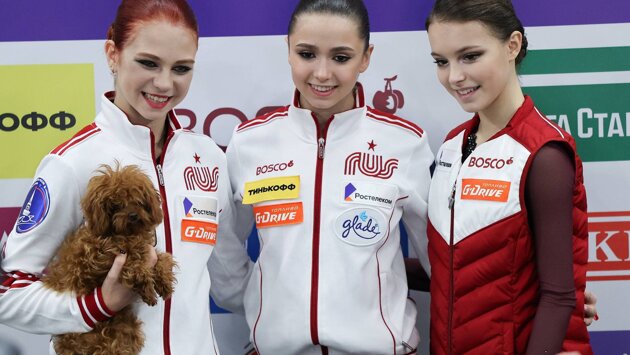 После короткой программы Валиева занимает первое место, Щербакова – 2-е, Трусова – 4-е.