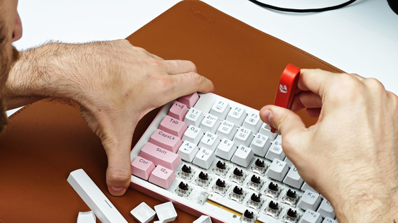 - Механические клавиатуры требуют чуть больше подготовки. Дополнительно ко всем инструментам вам понадобится пуллер для снятия кейкапов.