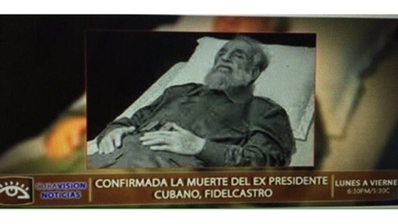 Российские и испаноязычные СМИ, распространившие новость о якобы обнародованной кубинским правительством посмертной фотографии Фиделя Кастро, перепутали кадр с фотографией муляжа 2010 года. На это обратил внимание корреспондент «Ленты.ру». Так, издание SPD Noticias сообщил, что кубинский телеканал Cubavision распространил посмертную фотографию лидера. При этом на сайте Cadena Tres («3 канал») отмечено, что кадр является фальсификацией и был использован одним из блогеров еще в 2014 году для статьи El minuto final de Fidel («Последняя минута Фиделя») — в ней говорилось о якобы смерти лидера в возрасте 88 лет. Еще раньше, в июне 2010 года, снимок был опубликован на сайте Designboom, который сделал фоторепортаж с выставки в Сиднее (Австралия). Китайский художник Шэнь Шаоминь создал восковые фигуры пяти коммунистических лидеров, организовав своеобразный саммит «Большой пятерки». На «встрече» присутствовали Фидель Кастро, Ким Ир Сен, Мао Цзэдун, Хо Ши Мин и Владимир Ленин. Последние четверо были представлены в стеклянных гробах, а Кастро — отдыхающим на кровати. Фидель Алехандро Кастро Рус скончался 25 ноября в 22:29 по местному времени (06:29 мск). О смерти брата объявил глава Кубы Рауль Кастро в обращении по национальному телевидению. Он сказал, что тело лидера революции согласно его воле будет кремировано.