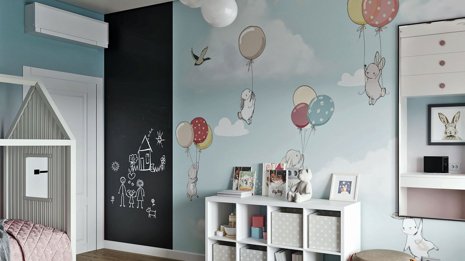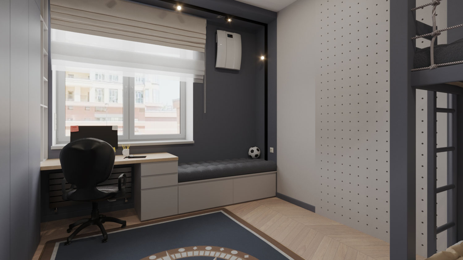 Детская комната выполняет три основные функции: сон, хранение и учёба (включая творчество, игры, спорт). Мебель и зонирование нужно продумать так, чтобы пространство легко трансформировалось от младенчества до подросткового возраста.