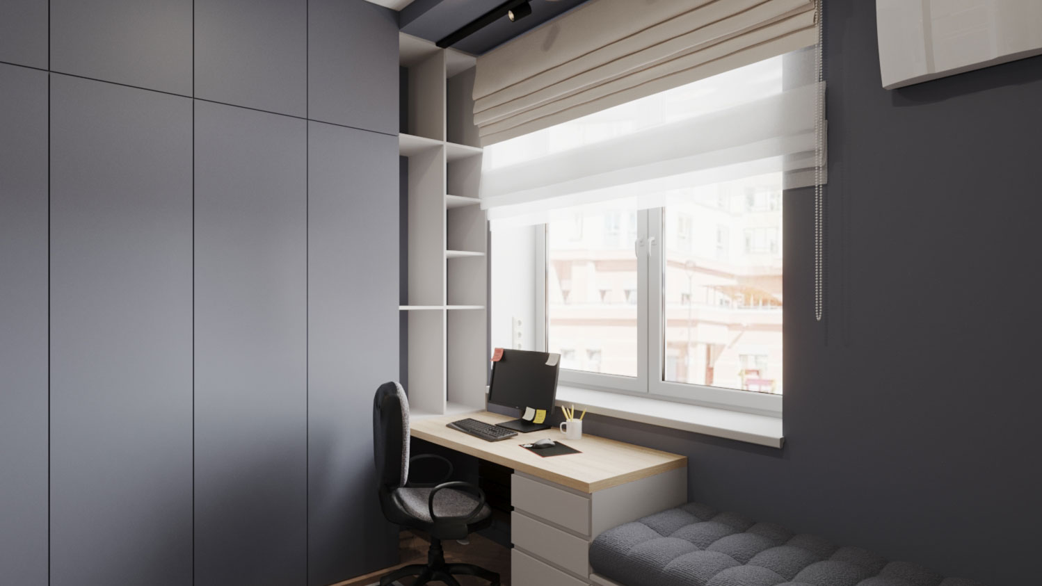 «Эта база задаёт крупные функциональные блоки — хранение, учёба, сон — и остаётся актуальной, потому что каждый элемент модульный. Мелкие предметы и декор легко заменяются без перестройки "каркаса"», — поясняет Елена Шошина.