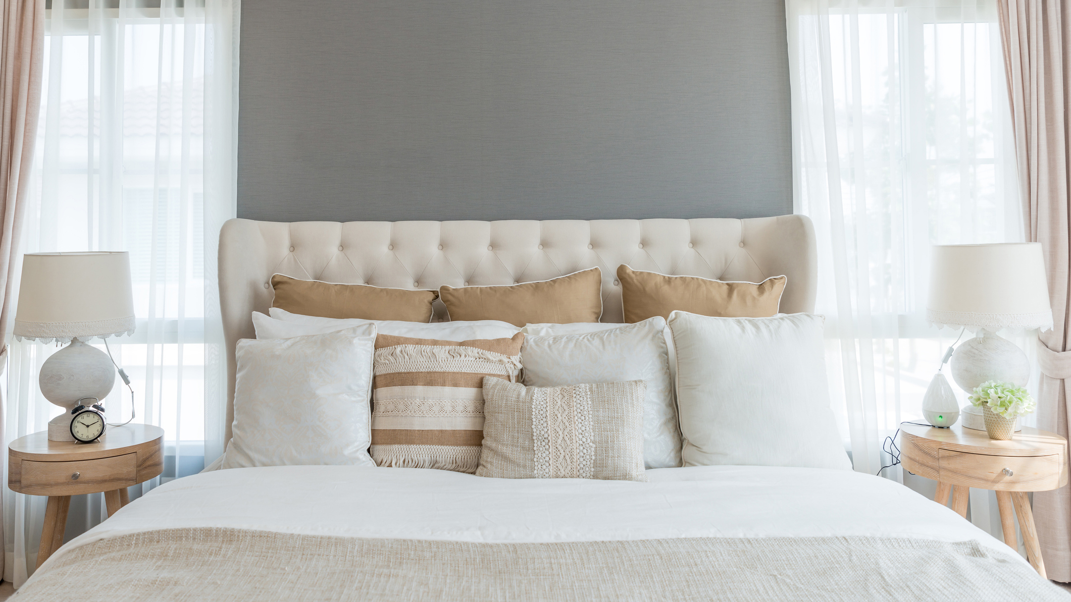 Плотные шторы в пол, особенно с подкладкой, сразу придают пространству более благородный вид. Декоративные подушки, покрывала и пледы добавляют фактуры и визуального уюта. При этом важно избегать дешёвого блеска и синтетики: такие детали мгновенно упрощают интерьер и «сбивают» ощущение стиля.