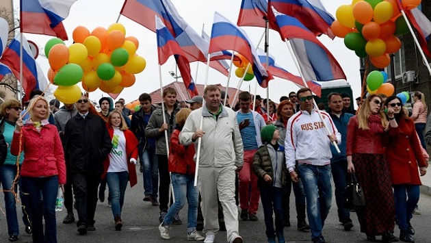 В центре Москвы, на Красной площади, проходит первомайское шествие, трансляцию акции ведет «Россия 24». В акции, посвященной Празднику весны и труда, принимают участие профсоюзы, также на шествии есть члены партии «Единой России». В то же время, в парке «Красная Пресня» проходит митинг партии «Справедливая Россия».