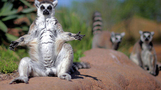 "Полосатый хвост взрослого кошачьего лемура, насчитывающий более 10 черных и белых полос, может достигать в длину свыше полуметра, а его вес может доходить до 1,5 килограмма. При этом сам лемур в среднем весит от 2,5 до 3,5 килограмма", — отмечается в сообщении.