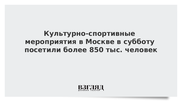 Культурно-спортивные мероприятия в Москве в субботу посетили более 850 тыс. человек
