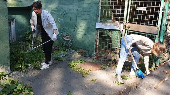 В Москве прошел субботник около Дома купца Виноградова