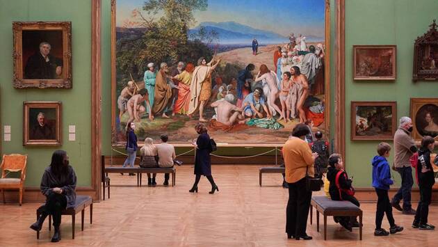 Это гигантское полотно художника Александра Иванова можно увидеть в Третьяковской галерее. Размеры холста действительно грандиозны: картина занимает семь с половиной метров в длину и почти пять с половиной в высоту. Художник писал картину «Явление Христа народу» в течение двадцати лет. На ней запечатлен сюжет из Евангелия — момент крещения народа в реке Иордан Иоанном Крестителем. В залах Третьяковской галереи можно увидеть не только признанный шедевр Иванова, но и многочисленные этюды и эскизы к нему.