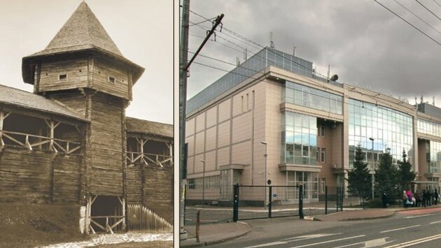 Итак, мысленно переходим несуществующий Татарский мост и оказываемся напротив арочных ворот между двумя корпусами Федерального университета (бывшего Реального училища), где ныне помещаются институты международных отношений, истории и востоковедения и психологии и образования (ул. Лево-Булачная, 44 и М. Межлаука, 1 соответственно). Именно от места этой арки в XVIII веке начиналась дорегулярная улица Большая Варламовская, шедшая в юго-западном направлении (рассекая по диагонали территорию сегодняшнего квартала Левобулачная — Мартына Межлаука — Московская — Г. Камала) к Тихвинской церкви, которая послужит нам в качестве первой опорной точки. В свою очередь, посадская стена, отойдя под углом примерно в 60 градусов от протоки Булак (перекресток Лево-Булачная — Галиаскара Камала), перерезала по диагонали тот же квартал, но в северо-западном направлении — при этом место Варламовских ворот следует искать в точке пересечения линии стены с трассой Большой Варламовской улицы. Они стояли во внутреннем дворе нынешнего вузовского комплекса, примерно на месте спортивного центра "Москва" (улица Московская, 49), стена же, миновав ворота, буквально через сотню шагов выходила на перекресток улиц М. Межлаука и Московской — напротив Центрального рынка.