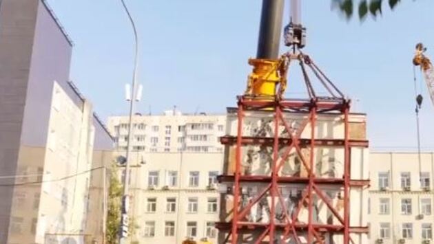Появилось видео переноса стены дома с портретом Гессе в Москве