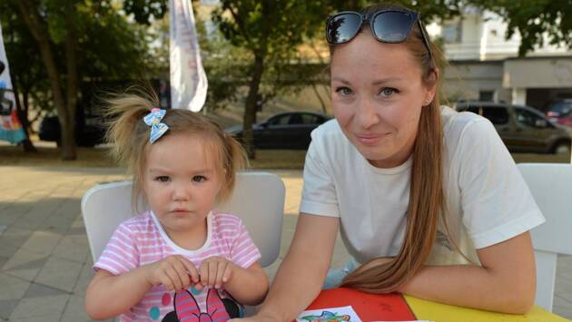 — Пока шла подготовка к нему, она все время показывала в сторону фестивальной площадки и спрашивала, когда мы туда пойдем, — говорит Надежда Лега. — Ребенок с увлечением проводит здесь время. В силу возраста нам еще не доступны все развлечения, но рисуем мы с удовольствием.