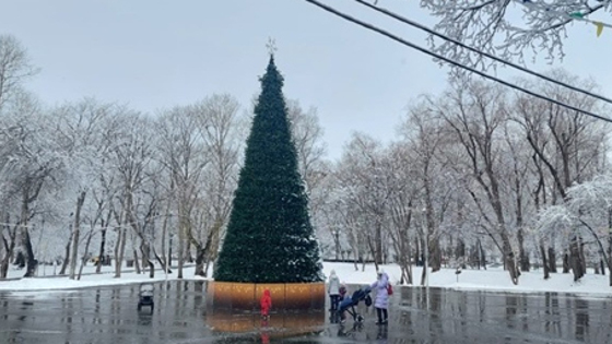 В Южно-Сахалинске в парке Гагарина установили новогоднюю ёлку