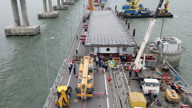 Восстановление железнодорожной части Крымского моста планируется в июле, сообщил Хуснуллин. Сейчас ведутся работы по сборке конструктивных элементов и подготовке к их монтажу. "Работы ведутся круглосуточно в две смены, задействованы 305 человек и 32 единицы техники", - отметил вице-премьер.