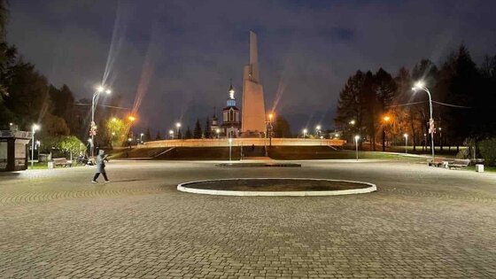 На центральных аллеях Парка Победы, ведущих к памятникам, вновь горят фонари
