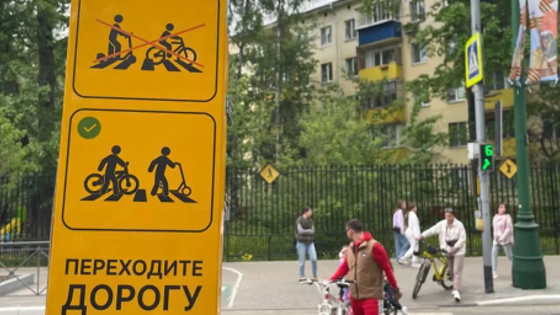В Красногорске на пешеходных переходах появились таблички для самокатчиков и велосипедистов