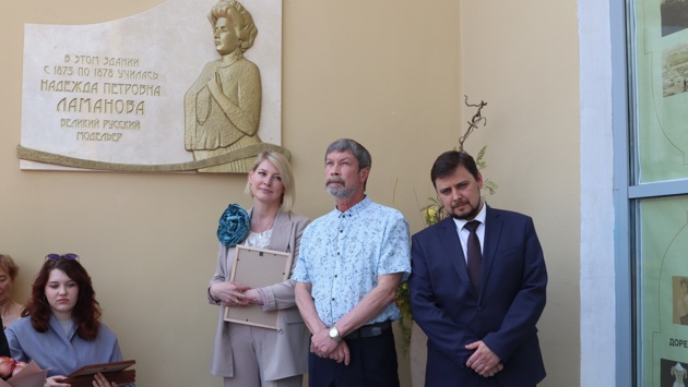 Эскиз мемориальной доски выполнила скульптор Татьяна Холуёва. Корпус ННГАСУ на Ильинской улице был выбран местом для ее установки не случайно — ранее в этом здании находилась Нижегородская Мариинская женская гимназия, которую Надежда Ламанова окончила в 1878 году.