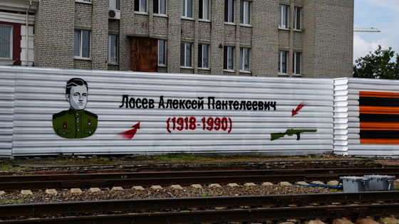 Портреты восьми курян – героев Курской битвы – разместили на ограждениях вдоль железнодорожных путей по направлению к Москве. Общая длина арт-объекта – 282 метра. — Курский железнодорожный вокзал является одним из исторических и военно-патриотических памятников. Обращая внимание на портреты героев, гости региона, местные жители получат возможность отдать дань уважения тем, кого ценят на священной Курской земле, и передать память о героях подрастающему поколению, – отметила председатель президиума Курской областной общественной организации «Союз интеллигенции» Людмила Сахарова. Проект арт-объекта стал в этом году победителем конкурса грантов губернатора Курской области. Главный художник проекта – Александр Головко.