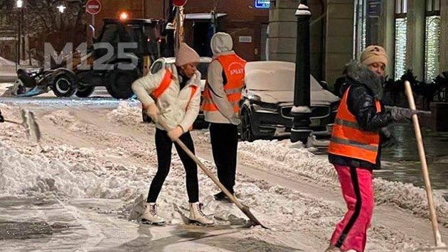 Снег на московском Арбате стали чистить дворники с Кубы