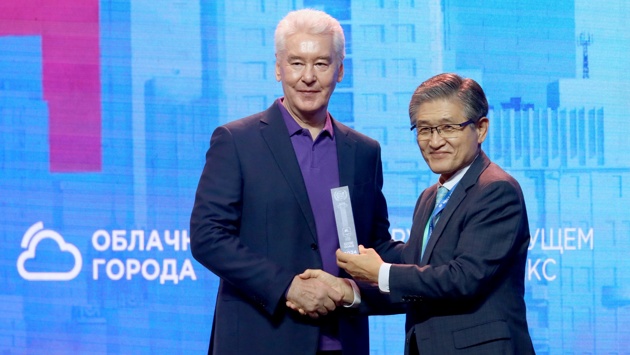 Награду получил мэр Москвы Сергей Собянин. Ему её вручил лауреат Нобелевской премии мира Рае Квон Чунг.