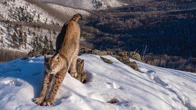Метельский победил в номинации «Животные в их естественной среде обитания» благодаря снимку рыси на вершине сопки в Лазовском районе Приморского края.