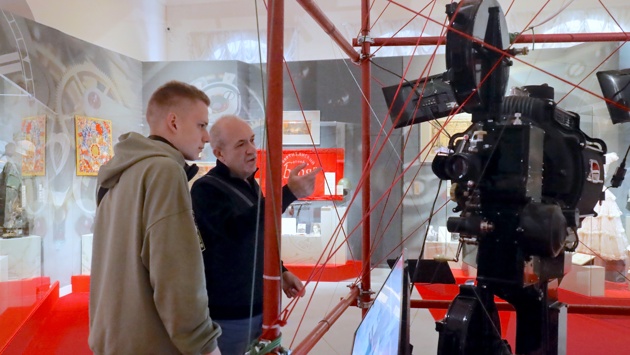 В экспозиции - кинопроектор, подаренный Сталину в день его семидесятилетия в 1949 году, а в разделе, посвященном Великой Отечественной войне, - военные трофеи и личные вещи советских военных, такие, как мундир маршала Конева или письмо на листе магнолии, которое снайпер Людмила Павличенко писала своей матери.