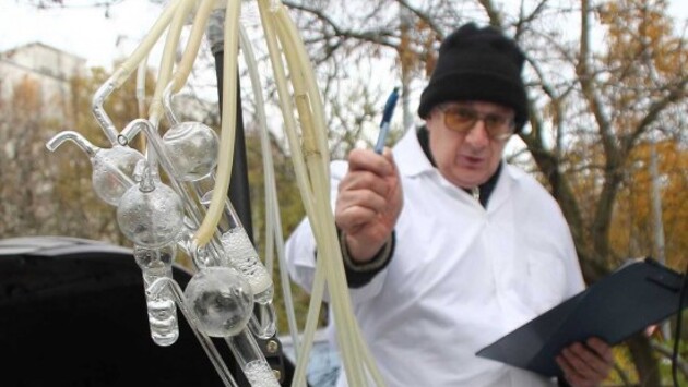 В колбах, к которым подсоединены трубки аспиратора, налит специальный раствор. Через жидкость проходит воздух, в результате чего меняется её плотность. Ещё один прибор определяет количество взвешенных веществ. В него вставлены фильтры, через которые также прокачивают воздух.