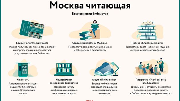 Книги выдают в 440 библиотеках и их филиалах без привязки к месту регистрации. Выбрать можно любую удобную читальню — по пути на работу или рядом с любимым парком. В каждой не только выдадут нужную книгу, но и познакомят с литературными новинками.