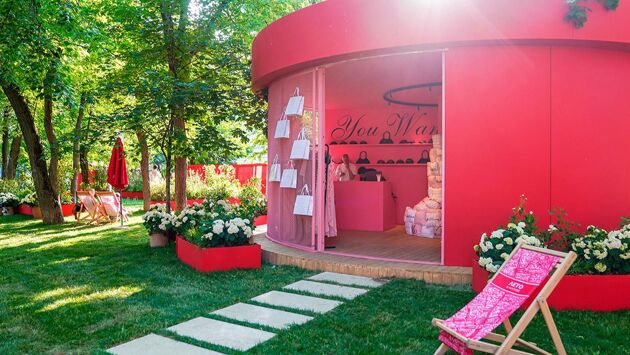 Второй павильон сейчас занимает российский бренд с ироничным подходом к моде и популярными коллекциями. Центральным элементом стала инсталляция с подушками в стиле фирменной футболки. Гостей поп-ап-магазина ждут стильные фотозоны, знакомство с бестселлерами и живая атмосфера творчества.