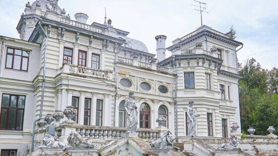 Особняк в стиле французского ренессанса создал Лев Кекушев. Главный дом усадьбы похож на застывшую морскую волну. Он украшен статуями-кариатидами, вазонами, лепниной и фирменным "знаком" архитектора – львами на мраморной лестнице, ведущей к дому. В интерьерах сохранились камины с мраморными порталами и зеркалами, бронзовые люстры и настенные бра.
