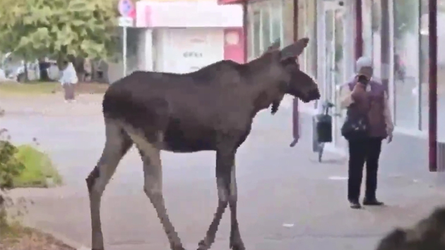 Лось прогулялся около станции московского метро и попал на видео