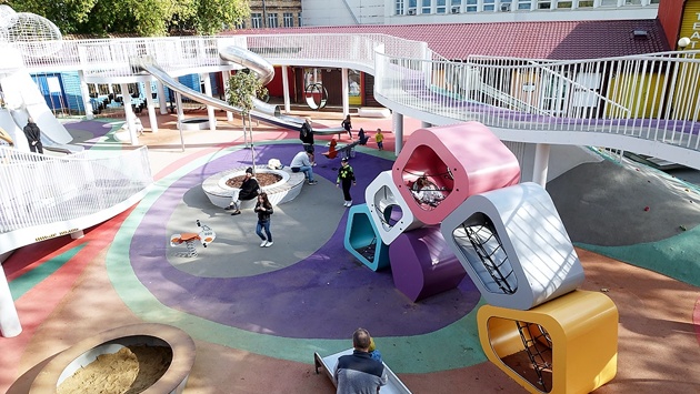 ...В районе Северное Тушино на Планерной улице, 12, на детской площадке вырос пятиярусный "небоскреб" с трубами-спусками. "Раньше здесь была площадка для малышни. Старшим было скучно, - говорит многодетная мама Галина Симбирёва. - У меня ребят четверо, младшей четыре, а старшему 11. Сейчас все при деле: младшие играют на нижних этажах, а старшие наверху. Очень удобно".