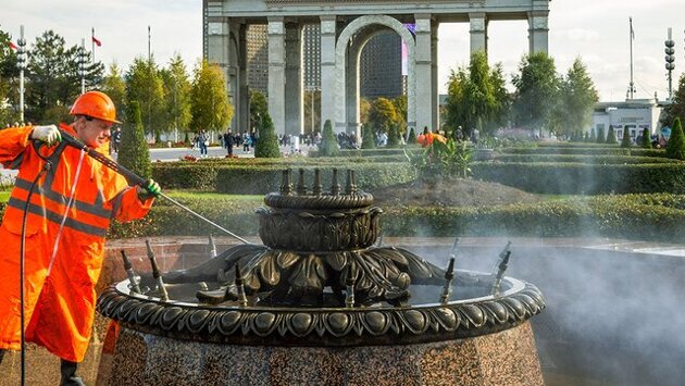 "Фонтаны Центральной аллеи", признанные объектом культурного наследия федерального значения, представляют собой сложные архитектурно-художественные сооружения с множеством декоративных элементов. Для их ухода требуется особый бережный подход, а промывка должна проводиться вручную, пояснил Бирюков.