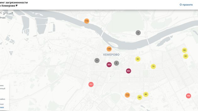 В понедельник, 20 октября, на момент написания новости качество атмосферного воздуха в Кемерове резко ухудшилось по сравнению с дневными показателями. Как указано на независимом ресурсе мониторинга загрязненности, местами достигнута отметка чрезвычайно опасной концентрации взвешенных веществ PM 2.5. При этом днем их содержание было в рамках приемлемого.