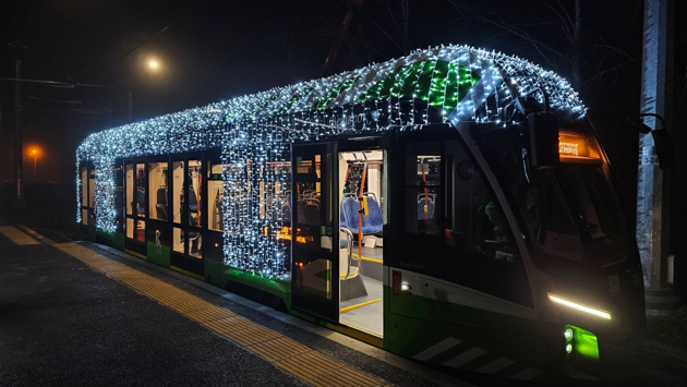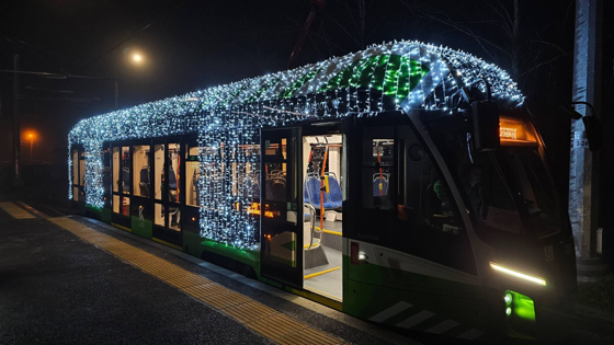 По Курску начал курсировать новогодний трамвай с 500 метрами гирлянд