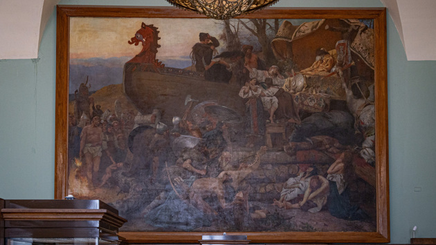 Исторический музей представил результаты работы своих реставраторов — завершили восстановление большеформатных картин художника Генриха Семирадского «Тризна дружинников Святослава после боя под Доростолом» и «Похороны руса в Булгаре». Реставрация началась в октябре 2025 года и проходила прямо в залах музея на глазах посетителей — полотна из-за их высокой значимости среди экспонатов решили не изымать из экспозиции (хотя роль также сыграло состояние и масштаб полотен), а потому леса для реставраторов разместили в непривычной для них обстановке — не в мастерской за столом, а под чуткими взорами внимательных посетителей, да еще и под потолком старинного здания музея.