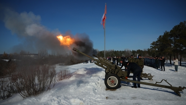 Ровно в полдень 23 февраля расчеты гвардейского мотострелкового соединения ЮВО произвели холостой залп из орудий.