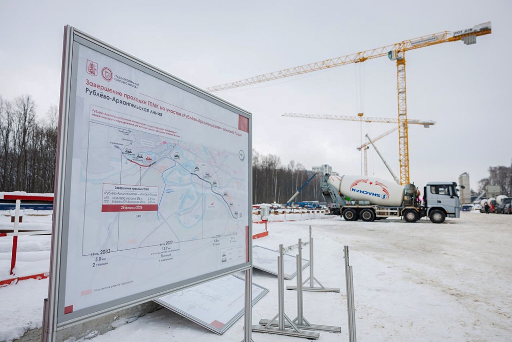 "Протяженность тоннелей 2,3 и 2,4 км. Их проложили под Новорижским шоссе и Москвой‑рекой - это огромный труд строителей и инженеров. Теперь они могут приступить к внутренним работам. Саму станцию запустим в 2027 году. Она станет частью будущей Рублево‑Архангельской линии и третьей на территории Подмосковья", - подчеркнул губернатор.