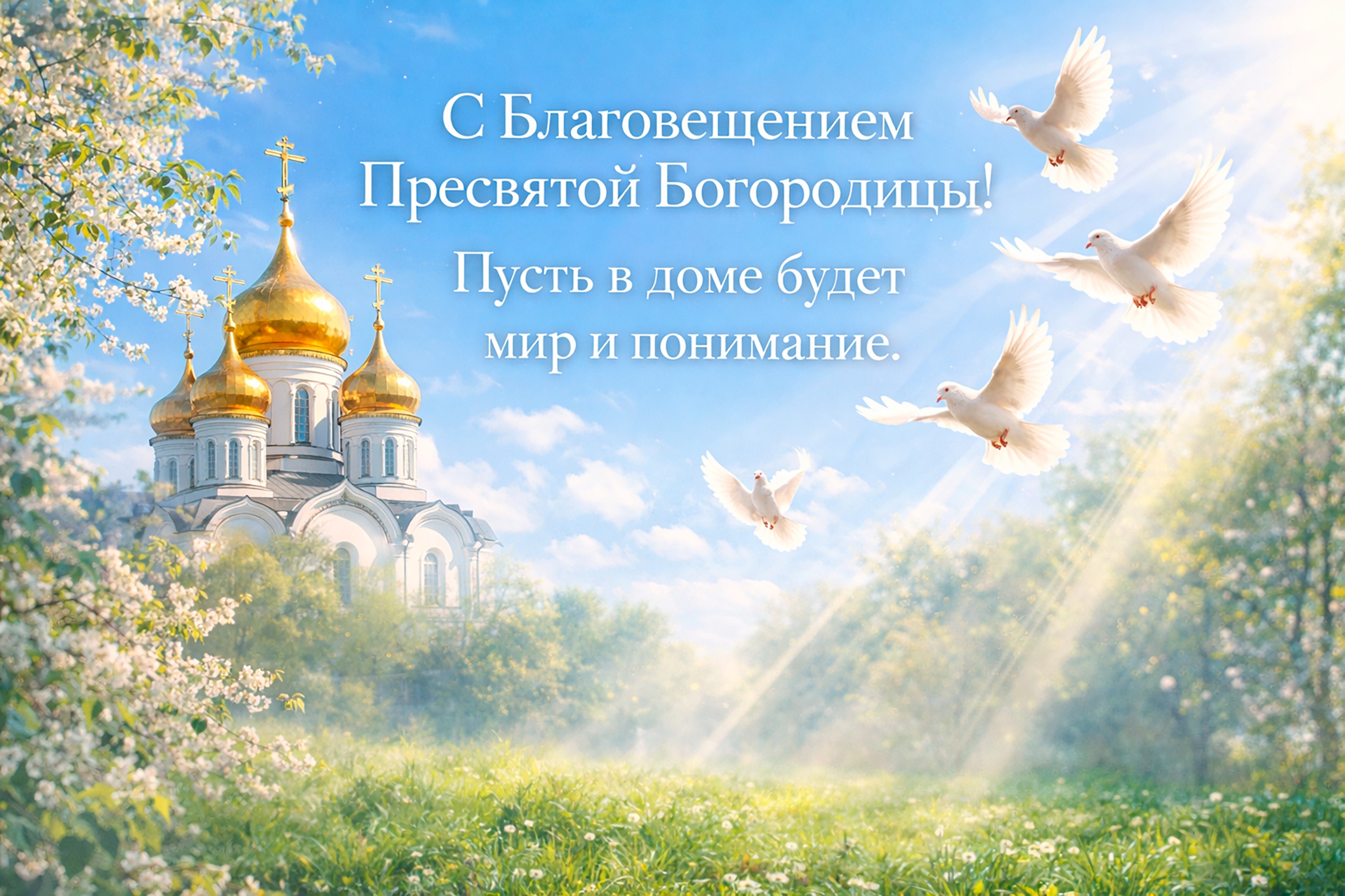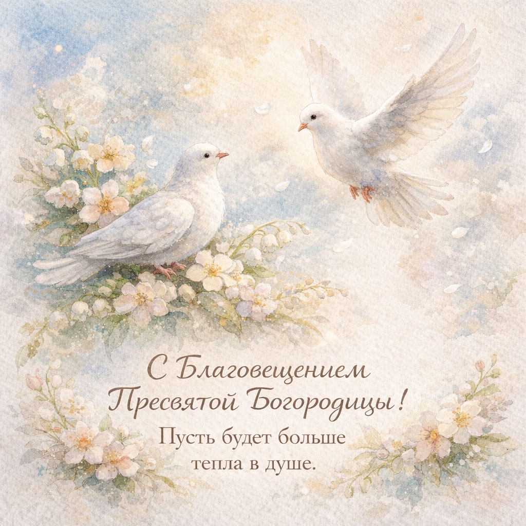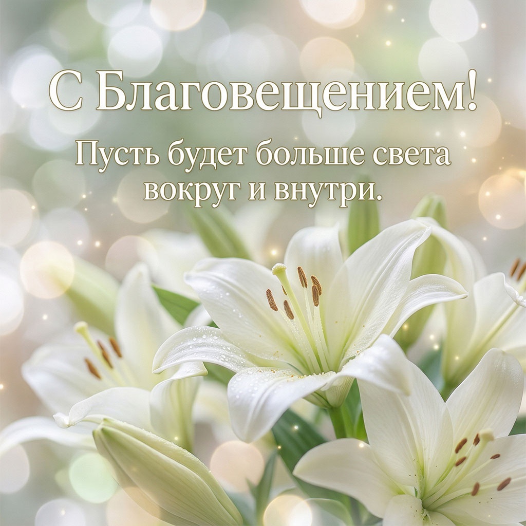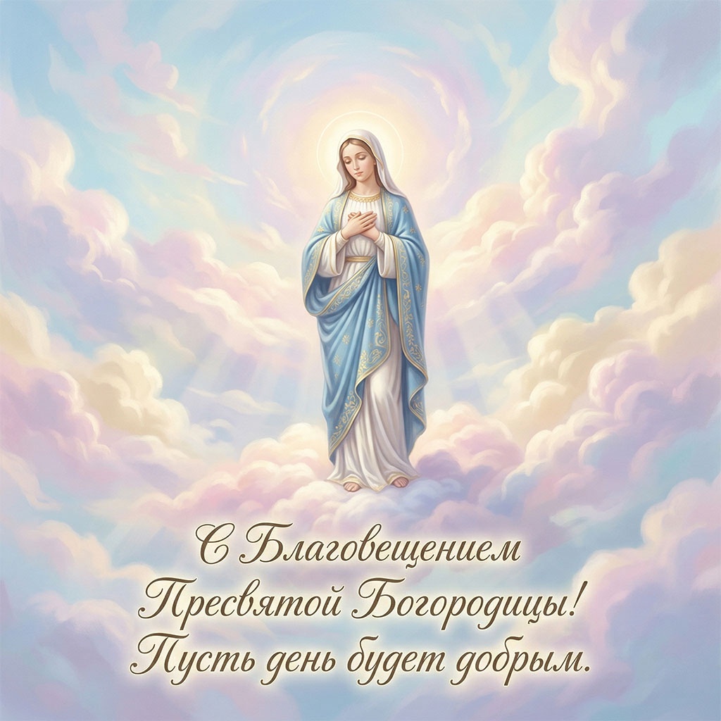 Для семейного поздравления с Благовещением (7 апреля) лучше выбирать светлые, душевные открытки с изображением Богородицы и Архангела Гавриила, белых голубей, весенних цветов или икон праздника. Популярны сюжеты, символизирующие благую весть, надежду, мир в семье и весеннее обновление, часто с теплыми пожеланиями здоровья и добра.