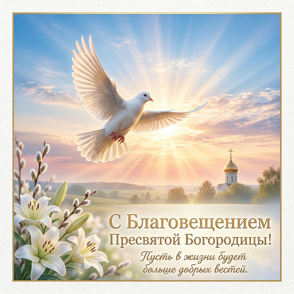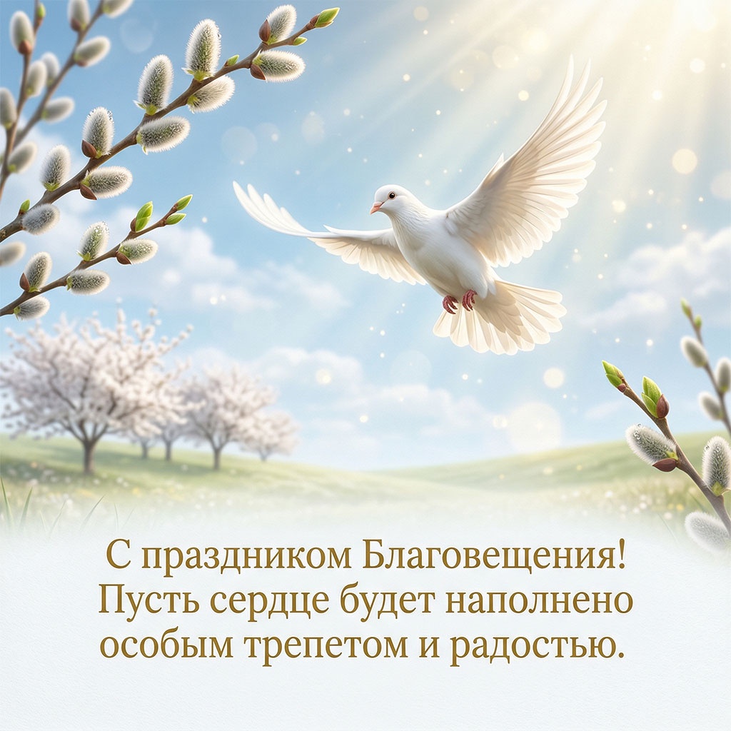 Используйте благовещенские открытки, добавляйте собственные слова и добрые пожелания, делитесь теплом и поддерживайте традицию поздравлений с этим красивым православным праздником.