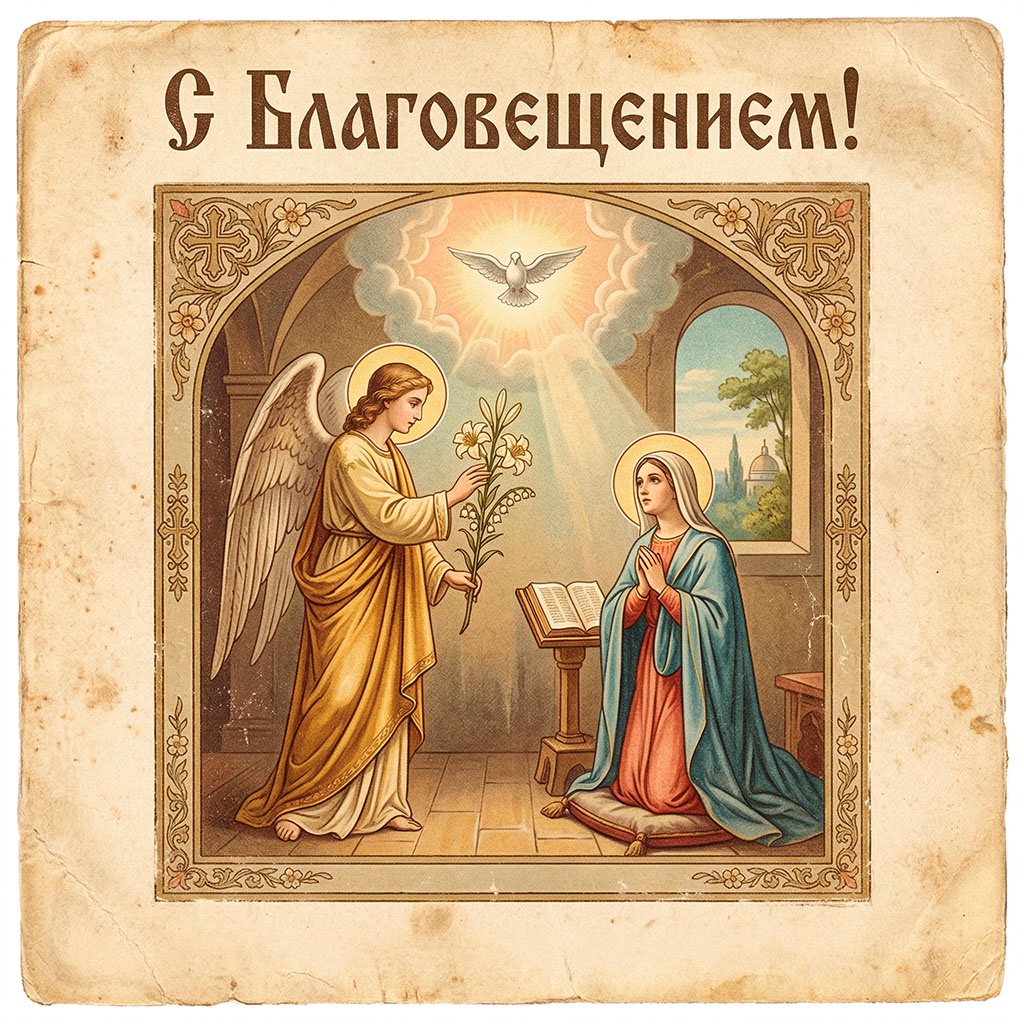 Бесплатные открытки к Благовещению (7 апреля) лучше всего скачивать на тематических ресурсах и в подборках онлайн-СМИ. Верующим подходят изображения с иконами или сюжетом встречи Девы Марии и Архангела Гавриила. Для семьи идеальны теплые, светлые изображения с белыми голубями. Для печати выбирайте картинки высокого разрешения (формат A5 или A6), можно использовать и варианты без текста.