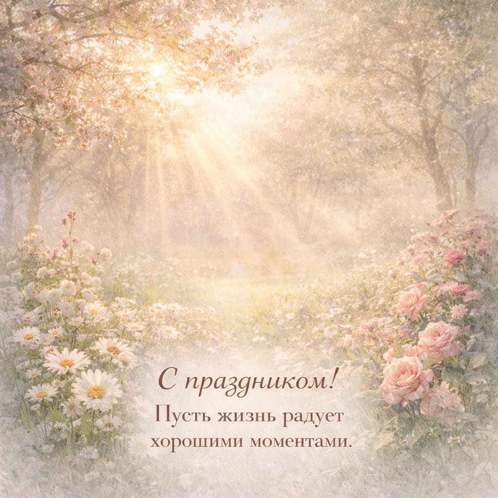 Такие открытки традиционно выбирают для родителей и старших родственников: они одинаково уместны и в электронном, и в печатном виде: картинку легко распечатать на плотной бумаге и вложить в подарок или в букет.