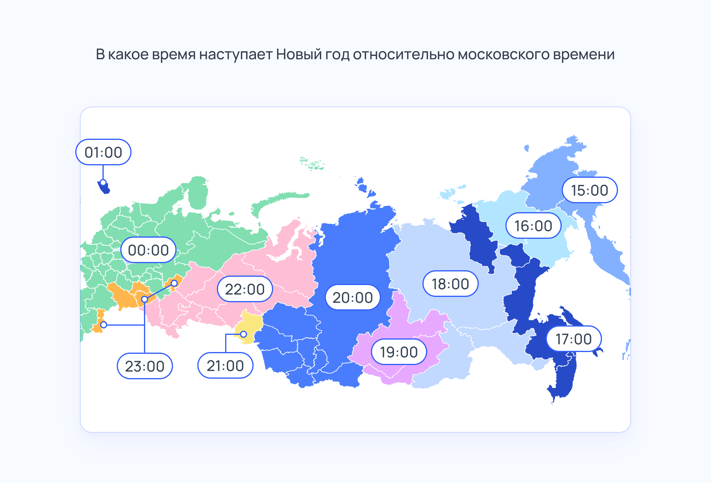 В России Новый год наступает 11 раз. Раньше всего этот праздник встречают на востоке — в Камчатском крае и Чукотском автономном округе. Там полночь наступает, когда в Москве ещё только три часа дня.