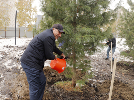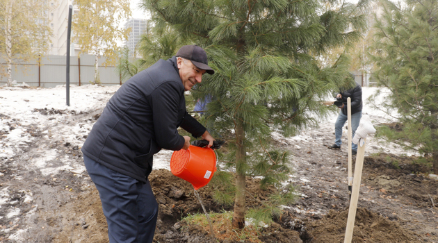 Сибирские кедры высадили в новом парке у Заксобрания в Новосибирске