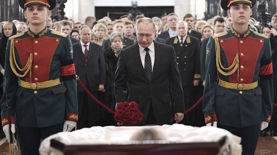 Президент России Владимир Путин в четверг, 22 декабря, почтил память российского посла Андрея Карлова, убитого в Турции. Церемония прощания с дипломатом состоялась в здании МИД в Москве. Глава государства возложил цветы к гробу убитого, а также выразил соболезнования родным Карлова. Проститься с дипломатом также приехали премьер-министр Дмитрий Медведев, глава МИД Сергей Лавров, председатель Совета Федерации Валентина Матвиенко, спикер Госдумы Вячеслав Володин и пресс-секретарь главы государства Дмитрий Песков. Лавров произнес над гробом прощальную речь, в которой отметил, что Карлов погиб на боевом посту, став «жертвой подлого, гнусного, террористического акта». 62-летний Карлов был застрелен в Анкаре 19 декабря во время открытия посвященной России фотовыставки в Галерее современного искусства.