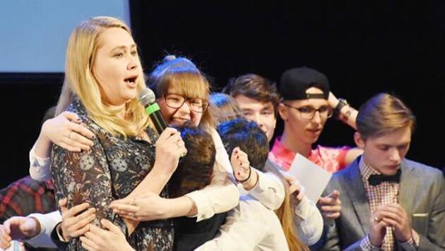 Ямальские веселые и находчивые показали, как бесшабашному школьнику попасть на центральное телевидение. В Ноябрьске в штабе Фестиваля школьных игр КВН жизнь била ключом. Шелест бумаг (куда без них), звук закипающего чайника, перезвон телефонов, чай с печеньем – всё на бегу... Сто двадцать участников окружной профильной смены из одиннадцати муниципалитетов с толком потратили каждый день весенних каникул. Творческий процесс не останавливался ни на секунду. В залах и аудиториях центра патриотического воспитания шла напряженная работа: уроки актерского мастерства, сценической речи и культуры сцены, репетиции и редактура. Всё ради общей цели – заслужить поездку в Москву на отборочный тур Юниор-лиги игр КВН. А если очень повезет, то и на центральном телевидении засветиться… ИЗ КАВЭЭНЩИЦЫ – В «РЕАЛЬНЫЕ ПАЦАНЫ» Редакторы у конкурсантов были что надо: бывший воспитанник надымского клуба веселых и находчивых, полуфиналист Высшей лиги ТТО «АМИК» на Первом канале, чемпион Центральной Северной лиги Руслан Шишкин. А также редактор Всероссийской Юниор-лиги, полуфиналист Высшей лиги, автор и актриса команды КВН «25 – Воронеж» Анастасия Дудко. – Первый раз я побывала на Ямале в декабре, – говорит Анастасия. – Здесь все удивительно, все как в сказке: чистый пушистый снег, домишки, от которых веет теплом и уютом… Насладиться красотами, правда, времени не хватило – короткий полярный день пролетает быстро… У каждого из ребят свой путь в Высшую лигу. Анастасия начинала в Рязани. Как-то друзья попросили ее поиграть за команду и заполнить 10-секундную паузу на сцене. Но она сорвала такой шквал оваций, что пробыла там полторы минуты и получила приз за лучшую женскую роль. – Потом целый год я ездила с этой ролью, – вспоминает Настя. – Мне подарили шесть пылесосов, двенадцать фенов, два видеомагнитофона и 24 кружки. В общем у меня всегда было, что подарить друзьям на день рождения. Гастроли принесли успех. Анастасию пригласили в сборную Рязани, затем в команду девушек «В мужской бане женский день», а после уже начались ее выступления в Высшей лиге вместе с командой «25 – Воронеж». Сегодня помимо КВН Настя снимается в комедийных телесериалах. Многие наверняка видели ее в «Реальных пацанах» и «Физруке». РАЗРЕШИТЕ СЕБЕ САМИ… Руслан начинал путь в Высшую лигу со школьной команды в Надыме, продолжил в студенческой, затем вошел в сборную Ямала. Здесь молодого человека заметили, и вместе с другом и соратником Родионом Коковым пригласили в «Тёмную армию Вятки», так ребята начали выступать в Высшей лиге за Киров. – С четырех лет я очень сильно заикался, – говорит Руслан. – У нас в семье есть видеозаписи, где мне 14 лет, а я слова произнести не могу. И в школе меня никогда к доске не вызывали из-за этого. А потом Елена Артуровна Беличенко, вдохновитель КВН-движения в Надымском районе, сказала: «Ты выйдешь на сцену!». Я попытался было возразить, мол, я не ма-а-гу-гы-гы-ворить… Она сказала: «Будешь!». Первые мои тексты состояли исключительно из самых коротких междометий типа «О-о!», «А-а…», «Ох». Сейчас я легко работаю с микрофоном, провожу свадьбы… – Правда свадьбы затягиваются часа на четыре… – в своей манере добавляет Анастасия. – Когда я стою на сцене и говорю в микрофон, не заикаюсь никогда, – продолжает Руслан. – Читая лекции начинающим КВНщикам, всегда говорю, ч