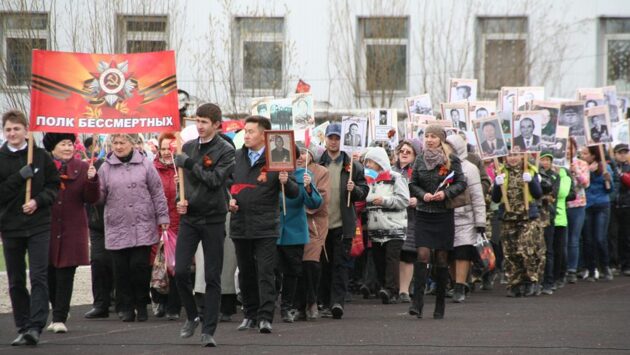 В поселке Хандыга торжественные мероприятия, посвященные Дню Великой Победы, начались с шествия «Бессмертного полка», в котором приняли участие сотни человек, в том числе ветераны тыла, труда, взрослые и дети. Состоялся парад с участием сотрудников полиции, Национальной гвардии, МЧС, школьники в военной форме и другие. С приветственным словом выступили глава Томпонского района Георгий Герасимов, глава поселка Хандыга Михаил Алексеев, военный комиссар района Сергей Кулишов и председатель районного совета ветеранов Галина Готовцева. Школьники вручили ветеранам письма и гвоздики. Из письма гвардии лейтенанта Михаила Неймохова, призванного в армию 7 июля 1942 года, дошедшего от Вязьмы до Восточной Пруссии, освобождая Белоруссию, Литву, Латвию. Боевой офицер Неймохов М. Д. был награжден орденами Красной Звезды (1944), Отечественной войны I степени, медалью «За победу над Германией»: «Восточная Пруссия, 9 мая 1945 года. Поздравляю всех вас с Днем Победы над врагом, с которым мы воевали целых четыре года, с 9 Мая! Мы сегодня ночью около трех часов по радио услышали об окончании войны, наши сердца наполнились радостью. Сегодня на небе нет ни одного облака, очень хороший и спокойный день. Все ушли на парад Победы, а я с товарищем лежу на зеленой лужайке и пишем письма. Вокруг цветы, зеленые деревья и трава. От их запаха тает сердце. На небе поет птичка, где-то в лесу кукует кукушка, приветствуя наступление лета. Сегодня наступил особенный день. Мы разгромили ненавистного врага, победили». 1 из 5 За Великую Победу сражались люди разных национальностей, в том числе представители Якутии. На фронт из Томпонского района ушли 558 человек, среди них Герой Советского Союза, великий снайпер Федор Охлопков, Герой Советского Союза Владимир Лонгинов и полный кавалер ордена Славы Иван Околович. В данное время в Томпонском районе проживают три ветерана войны: в поселке Хандыга – защитница Ленинграда, зенитчица Любовь Николаевна Калабина, Ирина Прокопьевна Баженова, в Баягантайском наслеге – 94-летний Афанасий Яковлевич Мекюрдянов. Потомки победителей помнят и гордятся подвигом своих отцов и матерей, дедов и бабушек. Зоя Дмитриевна Баланова, ветеран труда: «Я держу в руках портрет моего дяди Прокопия Васильевича Баланова. Он родился в 1926 году в маленьком Эсинском наслеге. Дошел до Берлина, после войны до 1947 года служил там же. Был награжден орденами Славы III степени, Красной Звезды и Отечественной войны I степени, был тяжело контужен. Умер в 1956 году в Верхневилюйском районе, живя у дочери, мне было 10 лет, когда его не стало, поэтому, к сожалению, я его хорошо не помню. Мы живем в счастливое время, когда нет войны, желаю, чтобы будущие поколения жили под мирным небом». Владимир Федорович Репа: «Мой дед, Александр Александрович Кордуб 1907 года рождения, был призван Печенежским РВК Харьковской области Украины 17 июля 1941 года. Служил в 53 танковом полку 69 моторизованной бригады. 16 июня 1944 года был награжден орденом Красной Звезды. Дошел до Будапешта. Среди наград были медали «За отвагу», «За освобождение Будапешта» и другие. У него было двое детей: сын и дочь – моя мама, ей было три года, когда дед ушел на войну. Умер дед в 1986 году. Я работал директором теплосервиса, сейчас на пенсии, жена Лариса Владимировна экономист в поликлинике. Для нас праздник Победы — это радость и время п